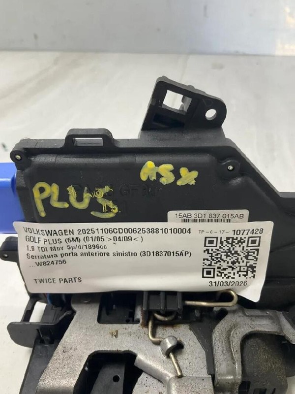 3D1837015AP SERRATURA PORTA ANTERIORE SINISTRO VOLKSWAGEN GOLF PLUS (5M) 1.9 TDI