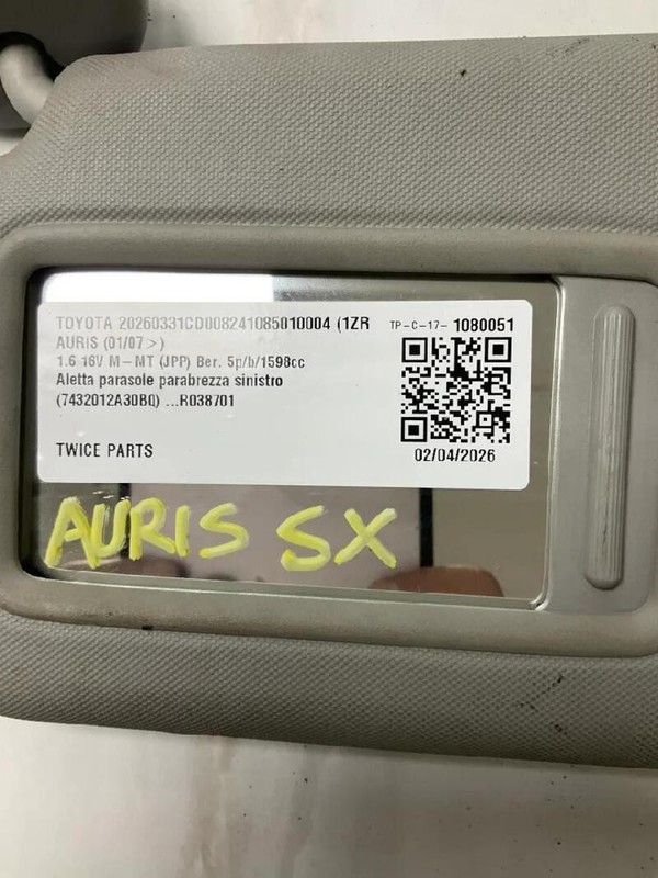 7432012A30B0 ALETTA PARASOLE PARABREZZA SINISTRO TOYOTA AURIS (01/07>) 1.6 16V