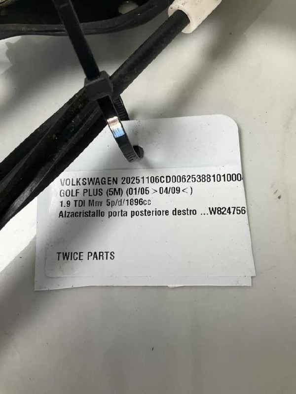ALZACRISTALLO PORTA POSTERIORE DESTRO VOLKSWAGEN GOLF PLUS (5M) (01/05>04/09