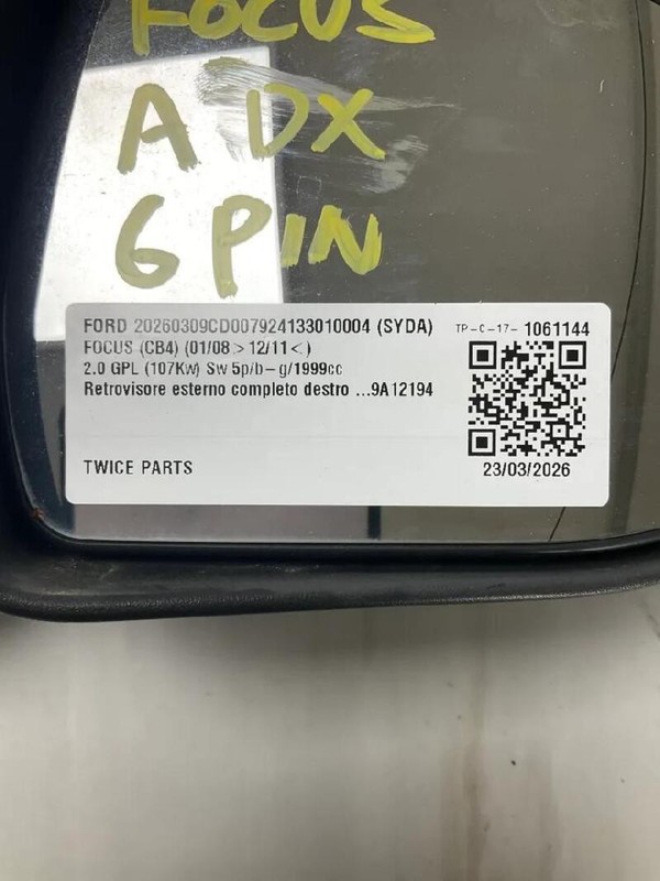 RETROVISORE ESTERNO COMPLETO DESTRO FORD FOCUS (CB4) (01/08>12/11<) 2.0 GPL