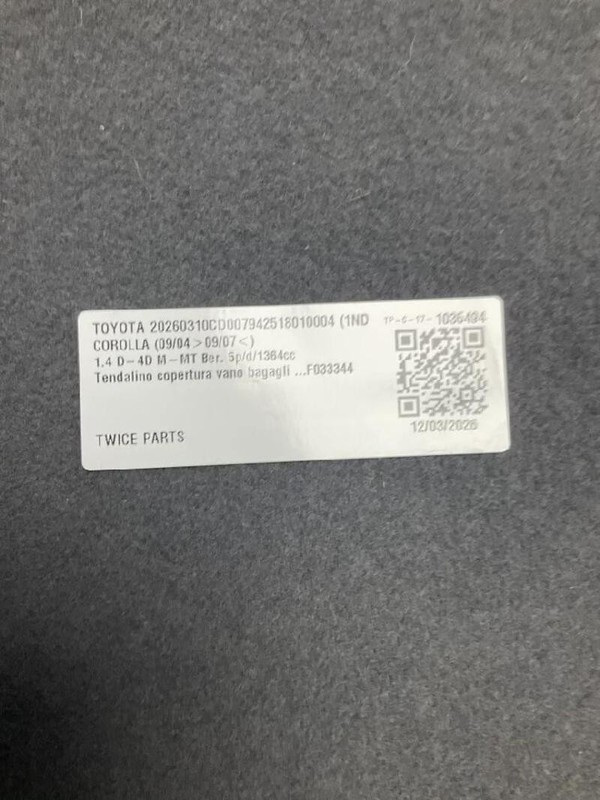 TENDALINO COPERTURA VANO BAGAGLI TOYOTA COROLLA (09/04>09/07<) 1.4 D-4D M-MT